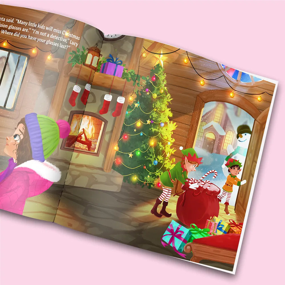 In questa storia tuo figlio o figlia aiuta Babbo Natale a salvare il Natale per la seconda volta. Babbo Natale ha smarrito i suoi occhiali per la visione notturna e non riesce più a trovarli. Ha bisogno di tuo figlio o figlia per questo compito! Riuscirà a trovarli in tempo?