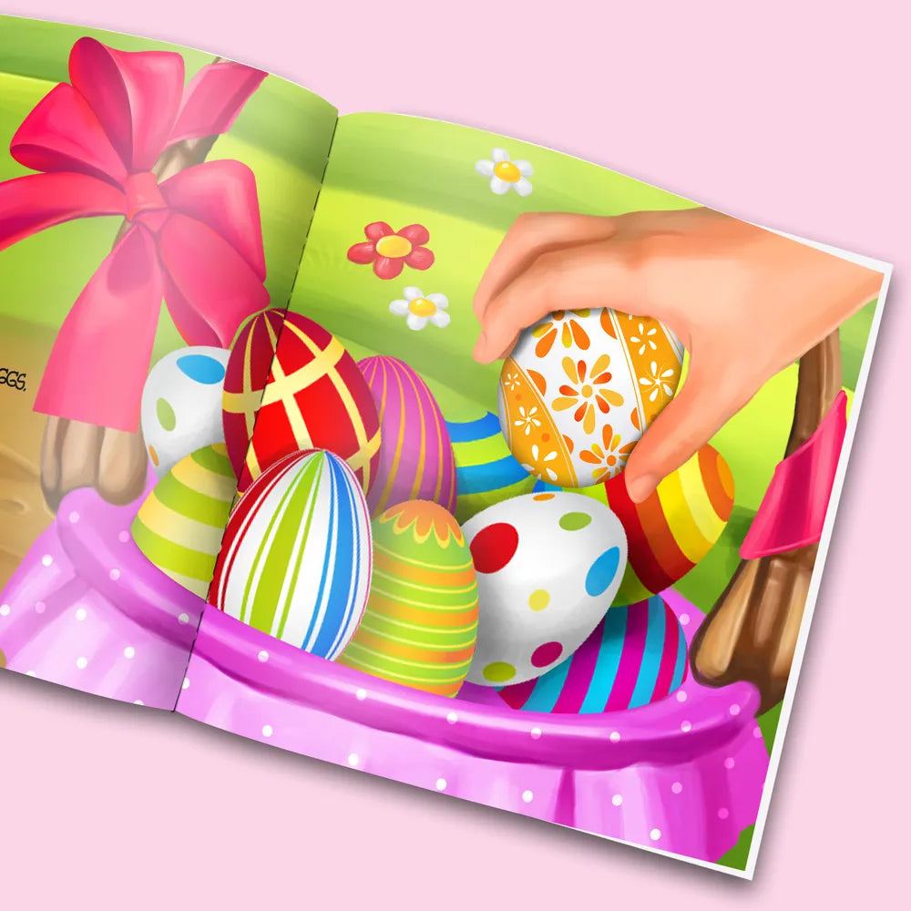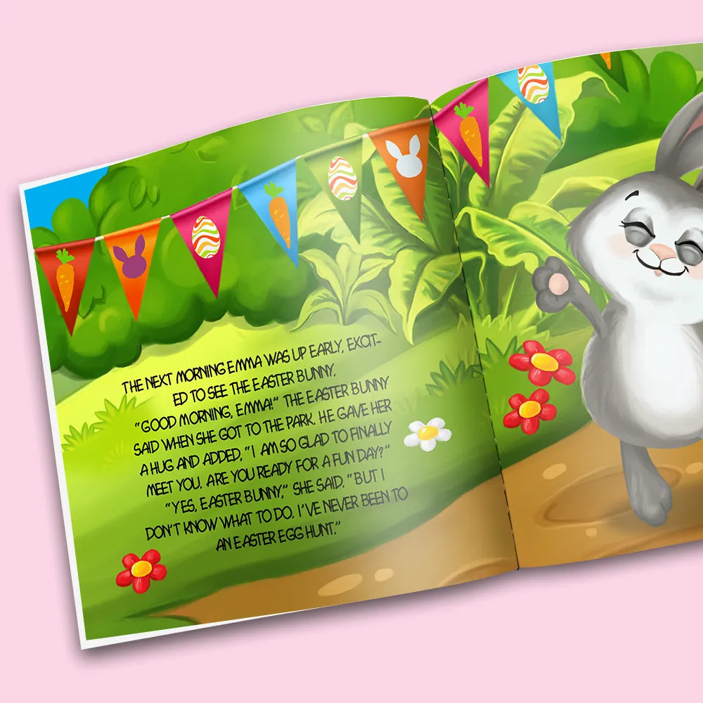 In questa storia tuo figlio o tua figlia riceve un invito speciale dal coniglietto di Pasqua per partecipare a una caccia alle uova di Pasqua.
