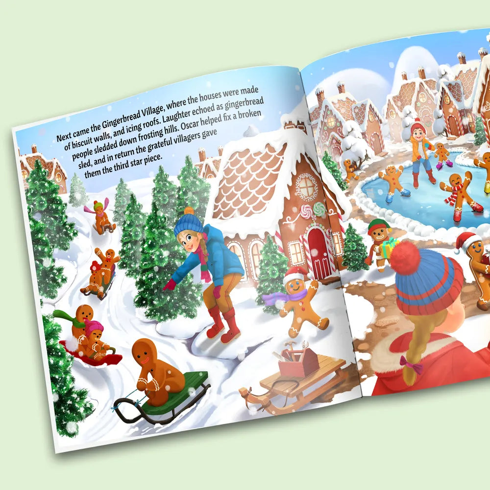 Quando la stella splendente in cima all'albero scompare, i tuoi piccoli partono con un simpatico elfo in un viaggio incantato per la Foresta di Bastoncini di Zucchero, il Villaggio di Pan di Zenzero, le Montagne di Ghiaccio e il Polo Nord, per ritrovare i frammenti della stella perduta.