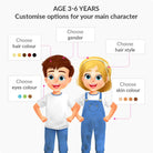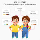 Puoi personalizzare la storia per uno, due o tre bambini — scegliendo i loro nomi e la loro età — così ogni fratello o sorella sarà perfettamente rappresentato nel racconto.