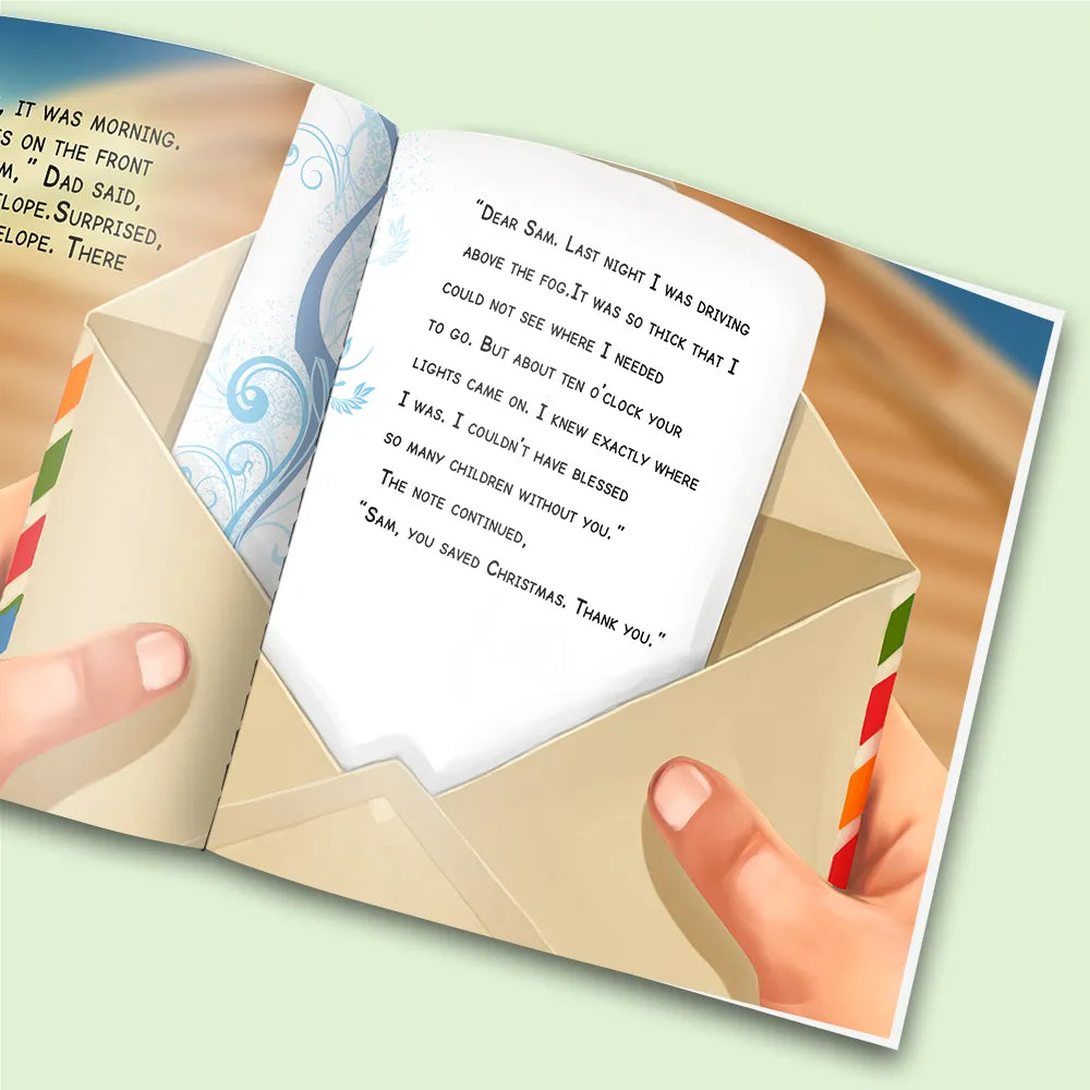Una storia in cui il tuo bambino salverà il Natale accendendo delle luminosissime luci natalizie che aiuteranno Babbo Natale a trovare la strada in una notte di nebbia.